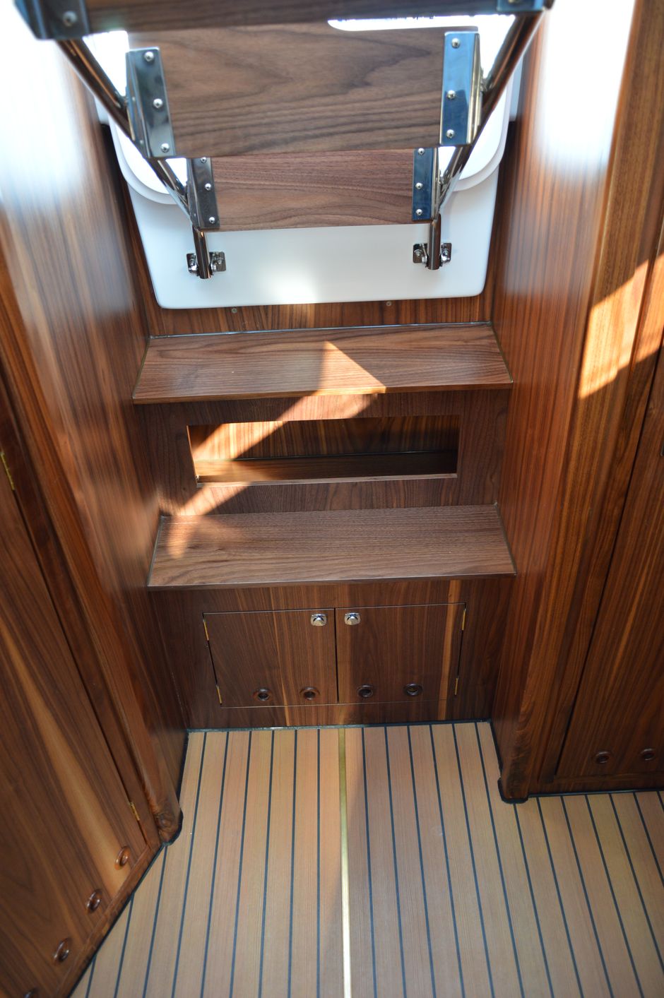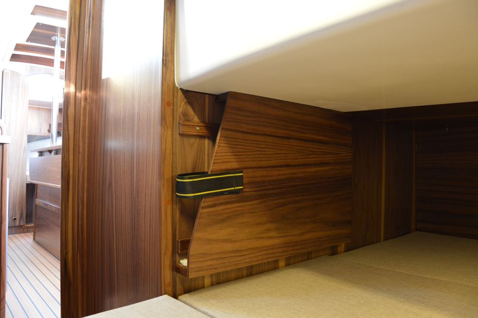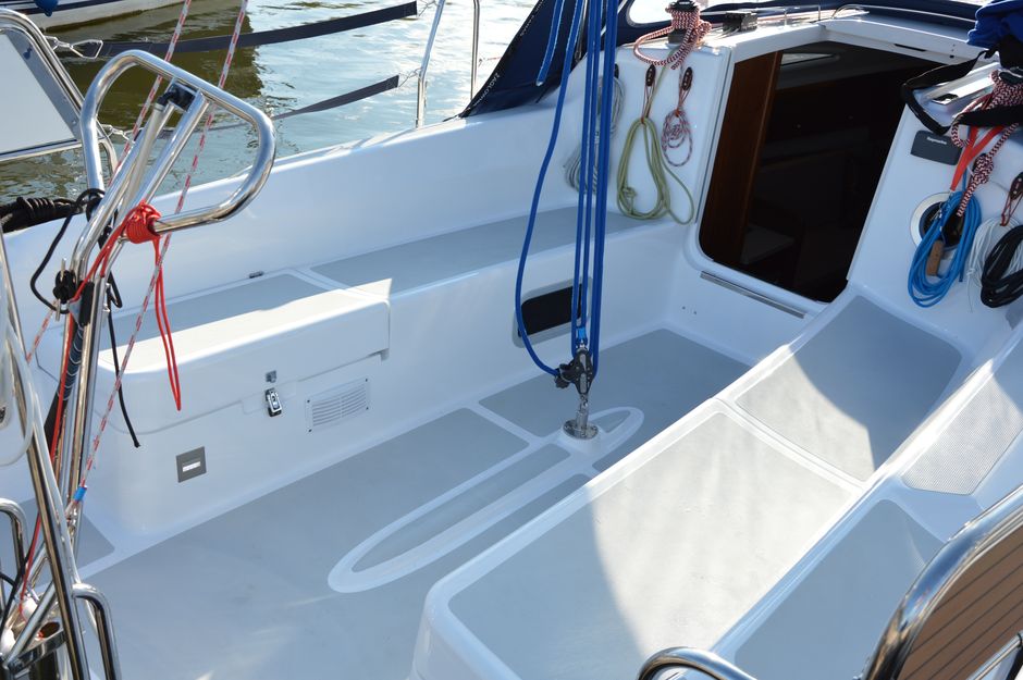 Atrakcyjna, dynamiczna sylwetka jachtu połączona z ergonomicznym ukształtowaniem pokładu oraz dopracowanymi detalami jest odzwierciedleniem dyskretnej elegancji.Podwyższona stateczność poprzeczna pozwala na zwiększenie powierzchni ożaglowania i prędkości przy słabszych wiatrach dając również poczucie komfortu i bezpieczeństwa w trudniejszych warunkach. Kształt kadłuba został zaprojektowany w sposób umożliwiający osiągnięcie wysokich prędkości oraz manewrowości i lekkości prowadzenia dające prawdziwą radość z żeglugi. Jacht został wyposażony dodatkowo w ekspress do kawy, echosonde Bidata i prysznic w kokpicie.
