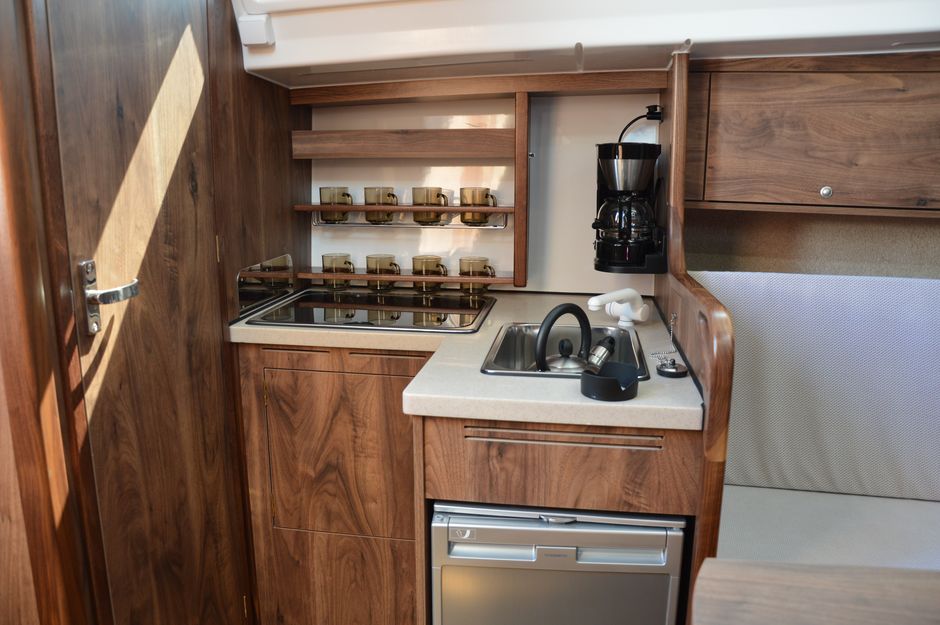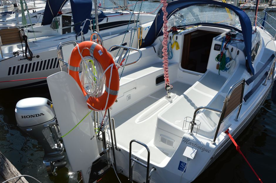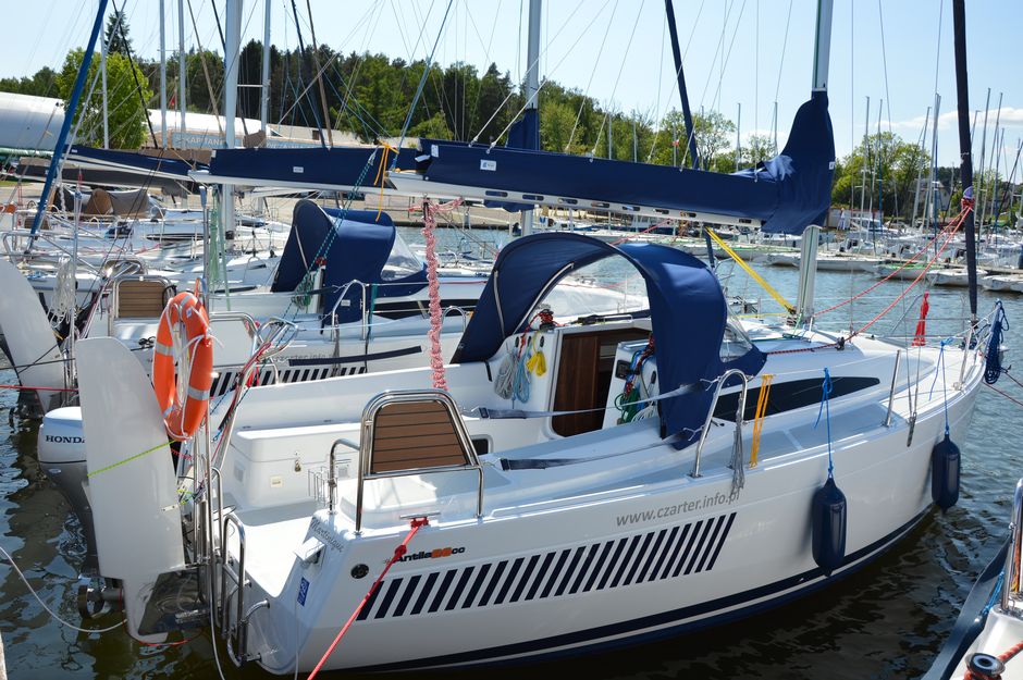 Atrakcyjna, dynamiczna sylwetka jachtu połączona z ergonomicznym ukształtowaniem pokładu oraz dopracowanymi detalami jest odzwierciedleniem dyskretnej elegancji.Podwyższona stateczność poprzeczna pozwala na zwiększenie powierzchni ożaglowania i prędkości przy słabszych wiatrach dając również poczucie komfortu i bezpieczeństwa w trudniejszych warunkach. Kształt kadłuba został zaprojektowany w sposób umożliwiający osiągnięcie wysokich prędkości oraz manewrowości i lekkości prowadzenia dające prawdziwą radość z żeglugi. Zamieszczone zdjęcia są zdjęciami poglądowymi. Jacht będzie wyglądał identycznie jak Antilia 26CC - Martinique. Wyposażony dodatkowo w echosonde B&G i prysznic w kokpicie.